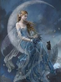 La religion des premiers celtes était donc bien une religion matriarcale et lunaire, aux mains de grandes prêtresses vierges, de druidesses vêtues de toges blanches chargées de faire des offrandes et des sacrifices à la Lune. Ainsi, sur l’île de Sein, au large de la Bretagne, en face de la Baie des Trépassés, neuf druidesses avaient édifiés un sanctuaire à la Lune au Vème siècle de notre ère. Certains de ces sacrifices, rappelant le mythe grec de l’émasculation d’Ouranos, le Ciel, par son fils Cronos, le Temps, exigeaient la castration de jeunes hommes qui faisaient don de leur virilité à la Lune. Plus tard, les druides gaulois remplacèrent les druidesses, mais le souvenir de l’ancienne pratique de la castration rituelle fut conservée au travers la cueillette rituelle du gui sacré par les druides, armés d’une faucille en forme de croissant de Lune. En Gaule, la déesse de la Lune, compagne du dieu solaire Bélénos avait pour nom Bélisama, christianisé en Irlande sous le nom de Sainte-Brigitt. Son culte était encore pratiquer au VIIème siècle, malgré l’interdiction de l’Église de Rome. La Déesse était souvent représentée sous la forme de la truie blanche Cerrydwen, assimilée par les bardes gallois à une déesse de l’orge et de la fécondité –comme Déméter. Enfin, on trouve un avatar de la Grande Déesse lunaire dans le personnage de la Fée Morgane des romans arthuriens, à la fois magicienne redoutable et souveraine de l’île mythique d’Avalon, où des prêtresses ont la garde des pommes d’immortalité.